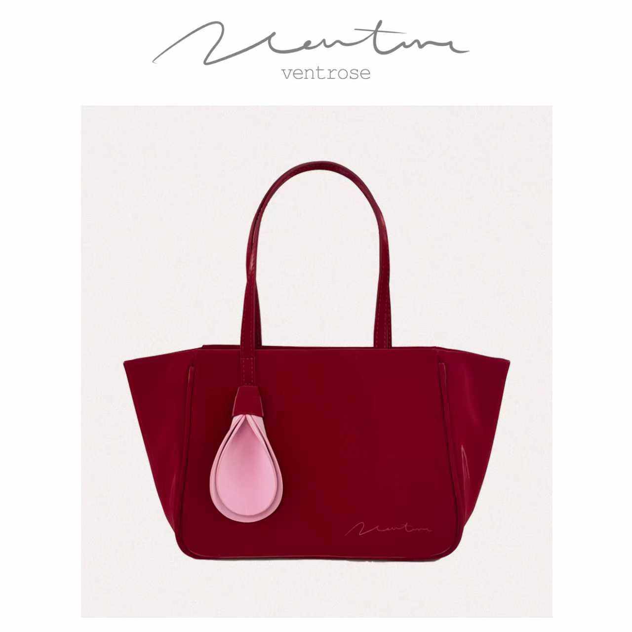 VENTROSE花园马蹄莲红色咖色撞色手提包女包红色包包节日款