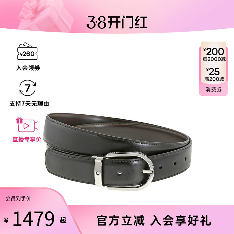 MONTBLANC万宝龙男士牛皮 皮带马蹄形闪亮镀钯针式腰带128135