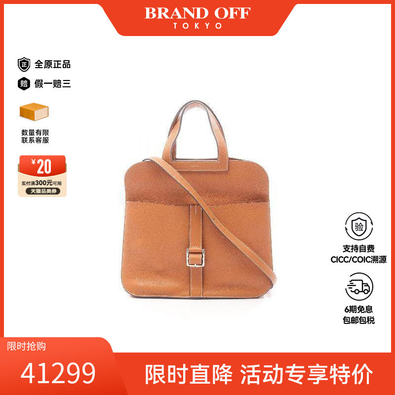 中古Hermes爱马仕女包A级95新Halzan 31 马蹄包牛皮斜挎包棕色