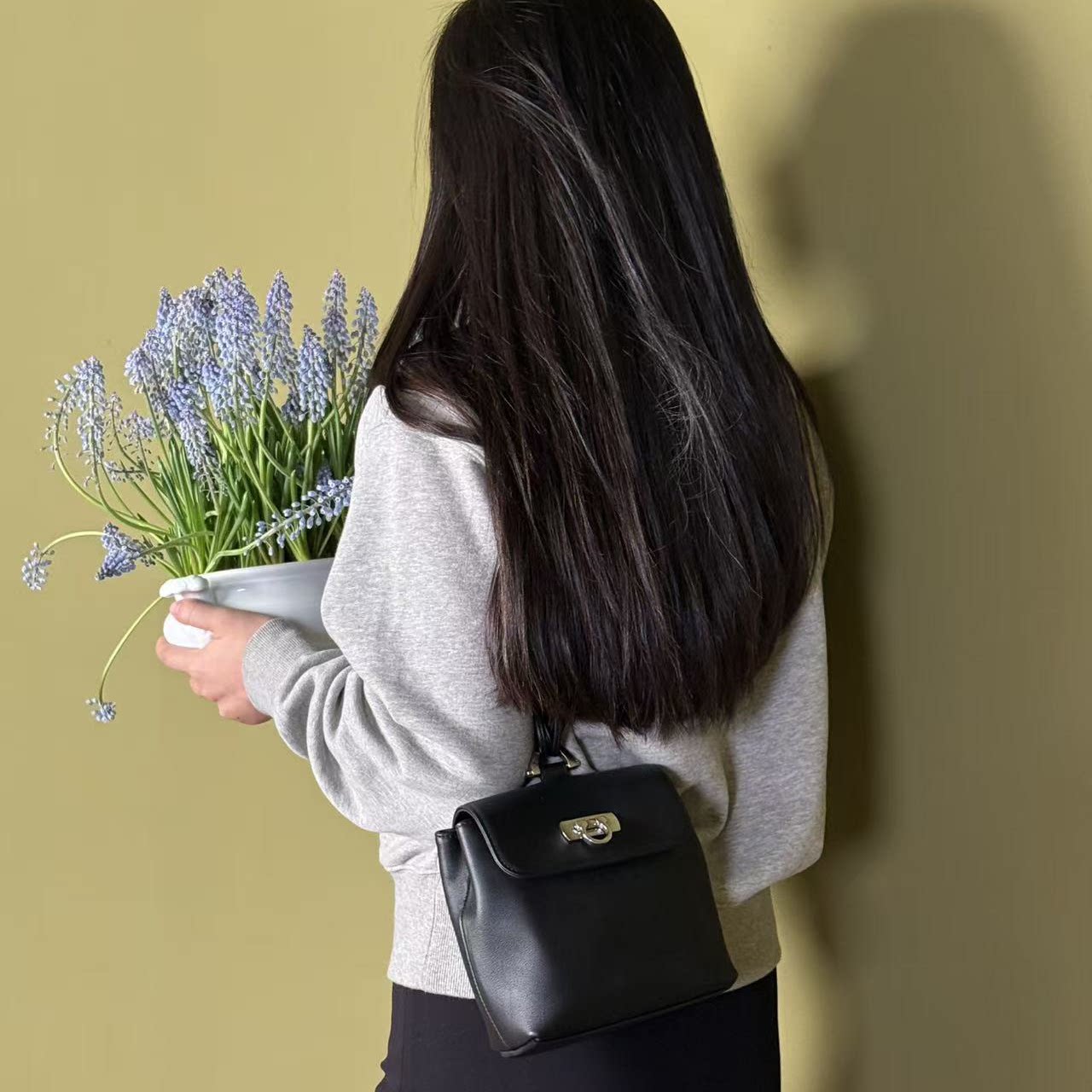 老钱风意大利进口头层牛皮黑银马蹄扣中古优雅千金单肩斜跨手拎包