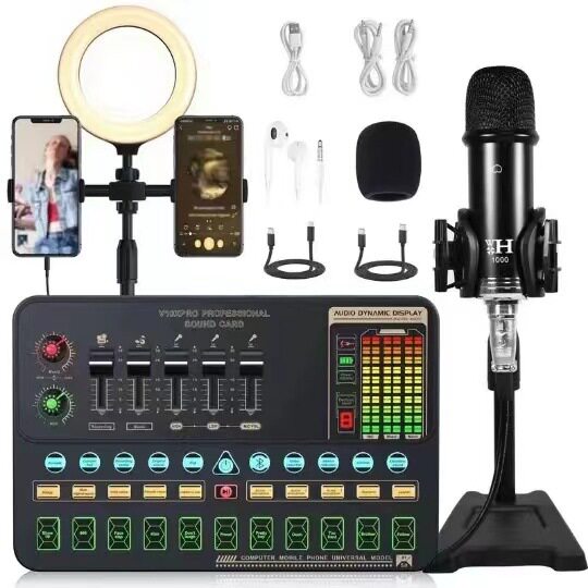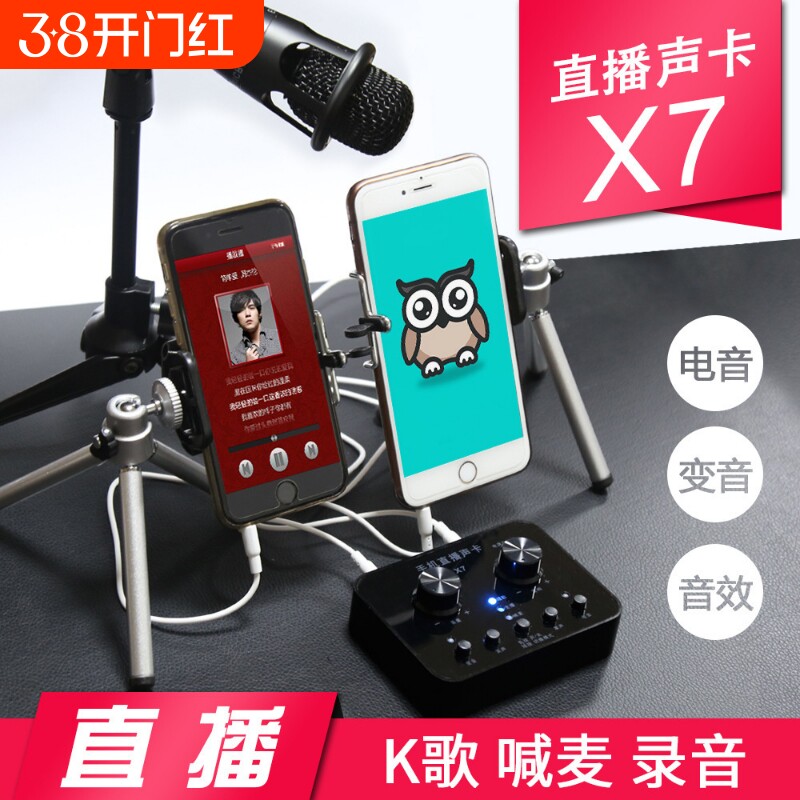 v8声卡套装全民k歌快手直播设备全套户外萝莉手机喊麦通用话筒