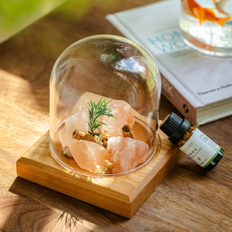 天然盐晶石香薰玻璃罩摆件桌面装饰水晶能量石家居办公室创意礼物