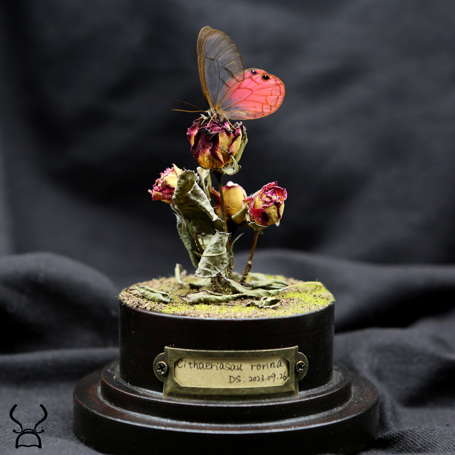 永生花蝴蝶标本玻璃罩圆球形应援棒手办摆件EVA防脱落炭烧卡扣底