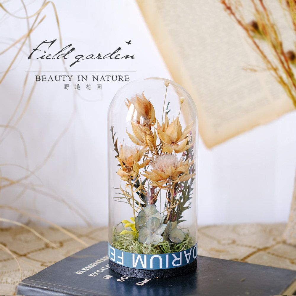 野地花园玻璃罩摆件植物标本 干花永生花复古文艺森系田园伴手礼