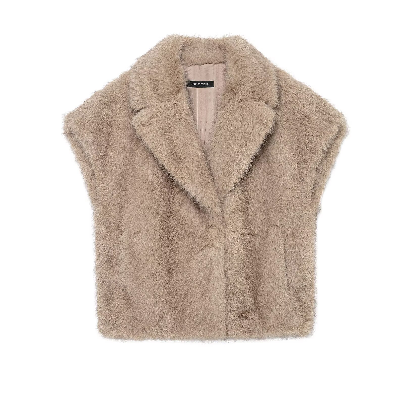 人造皮草效果背心2212/243宽松慵懒风柔软毛毛气质御姐西装领马甲