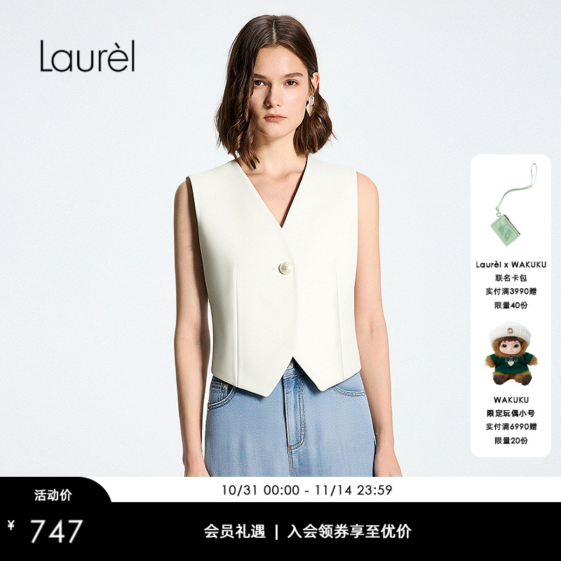 Laurel劳芮25秋新款短款无袖西装领马甲LWD353B01000