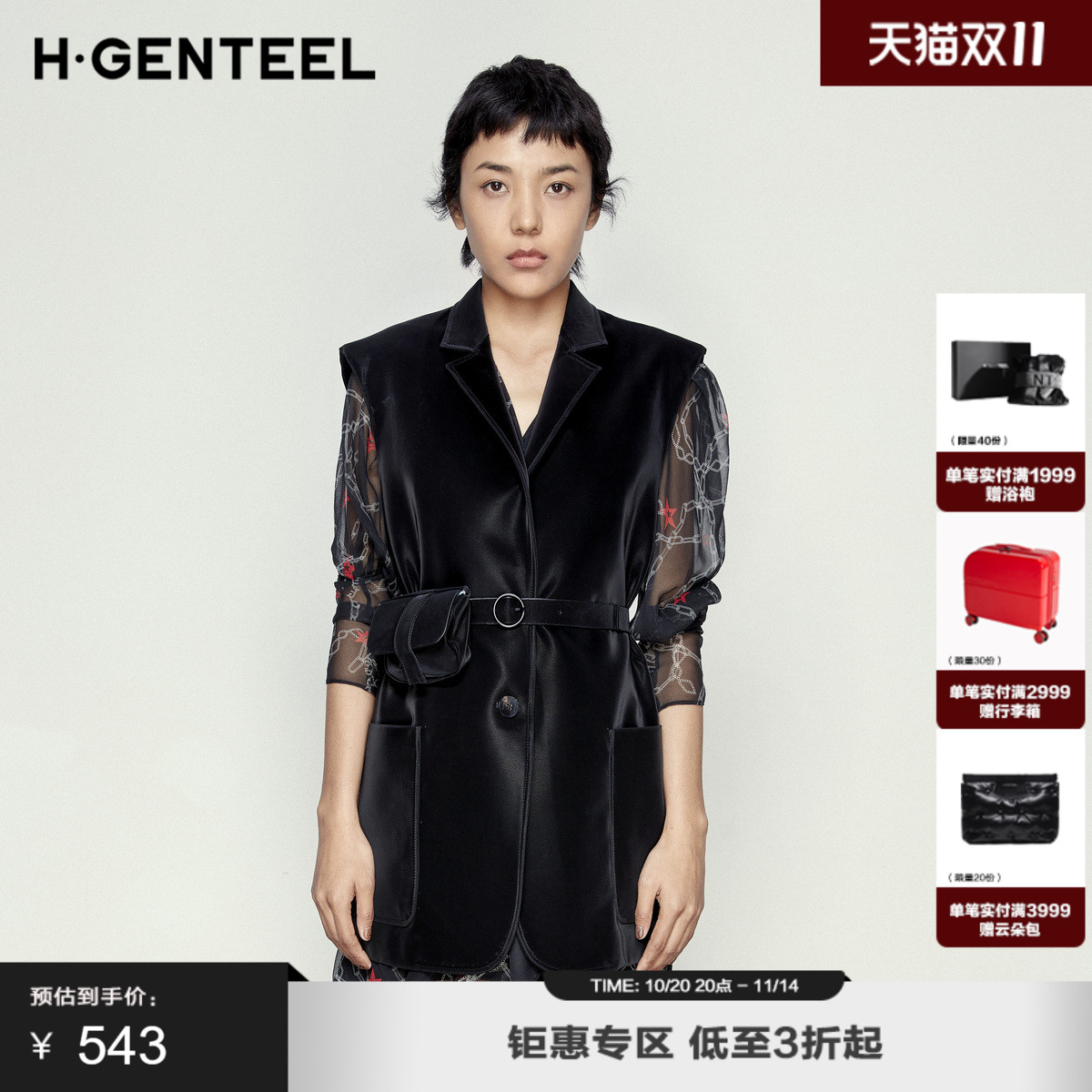 H·GENTEEL荷高秋新款女装黑色直身廓形西装领马甲GUB31580665