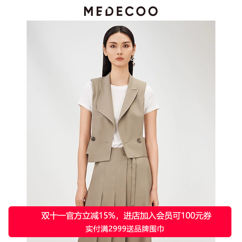 MEDECOO/墨蒂珂夏季新款修身双排扣西装领马甲马夹女MHX33101