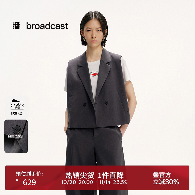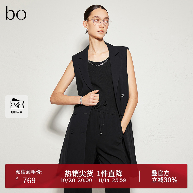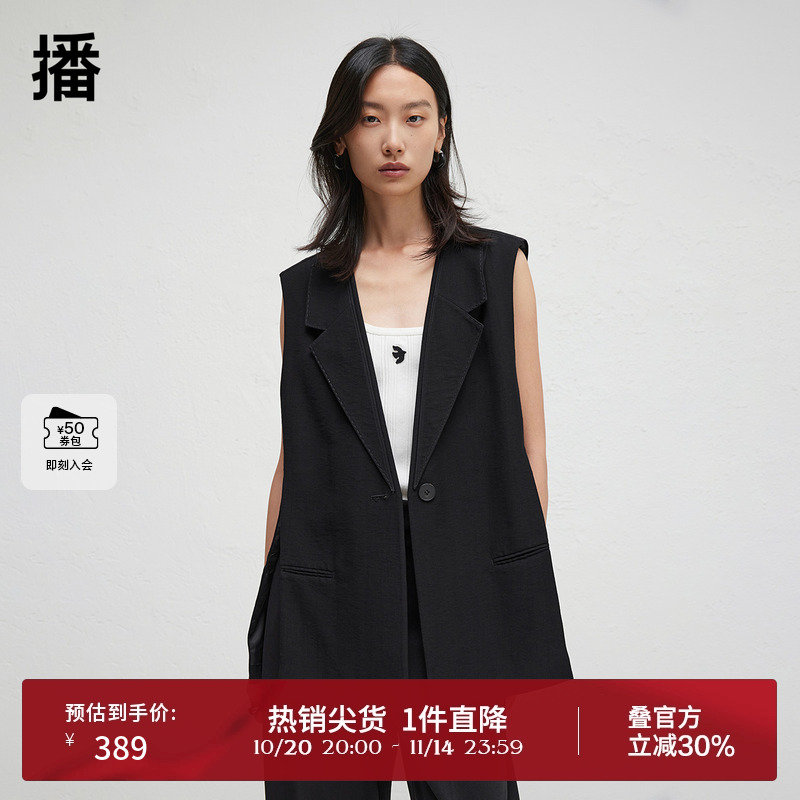 播商场同款简约西装领马甲女24春秋叠穿坎肩上衣BDR3MD3015