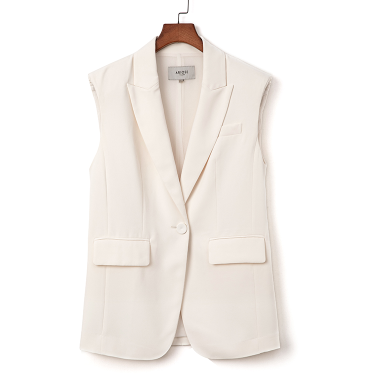 艾诺丝系列品牌折扣特价无袖西装领马甲外套百搭短款显瘦开叉上衣