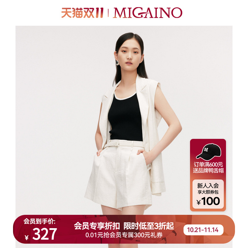 Migaino曼娅奴女装夏季新款通勤简约经典西装领马甲MO22CA002
