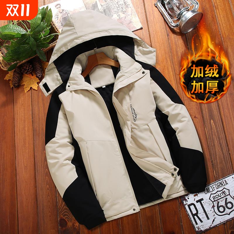 冬季户外冲锋衣爸爸装加绒加厚中老年人男士棉衣外套三防合一棉服