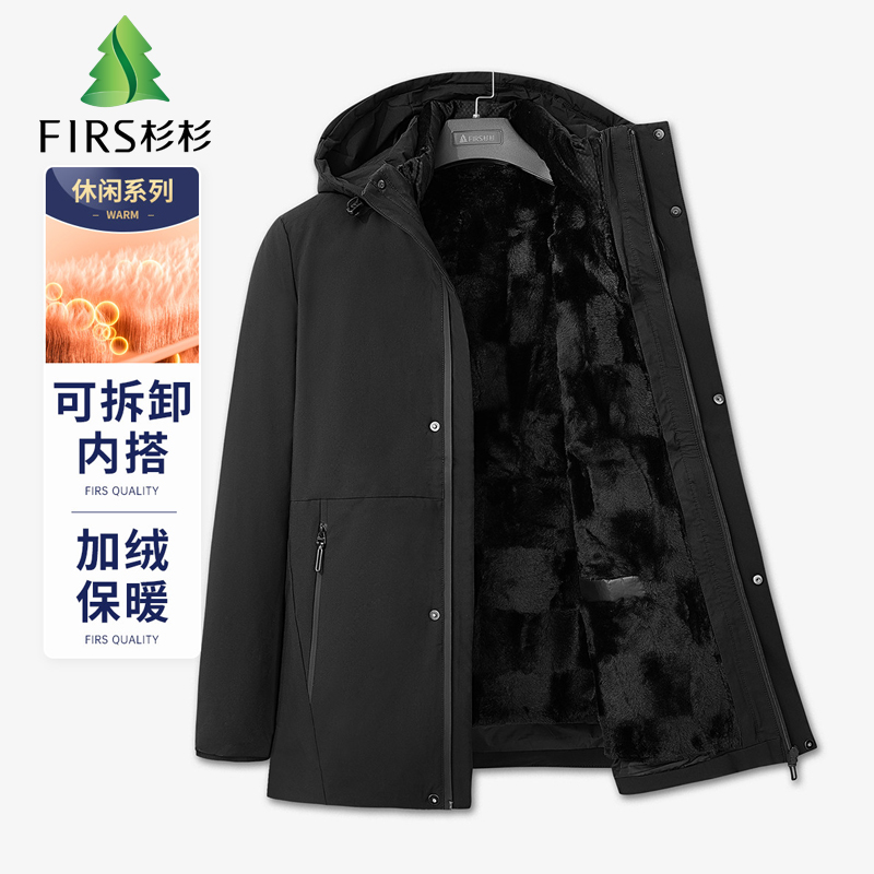 杉杉夹棉加绒加厚可拆卸内胆冬中长款棉服连帽爸爸装男士棉衣外套