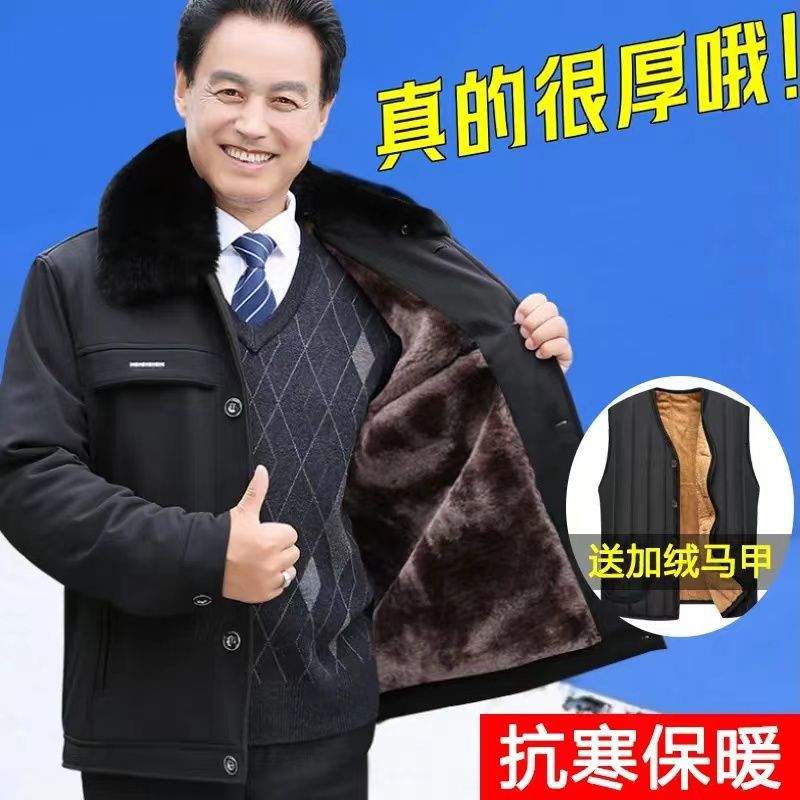 中年男士棉衣服冬季加绒加厚款中老年人保暖防寒爸爸装外套棉袄子