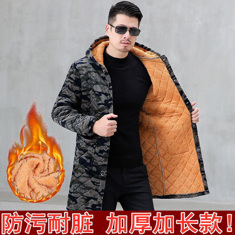 四川省服冬季新款男士棉衣加绒特厚加厚中长款罩衣外套宽松工作服