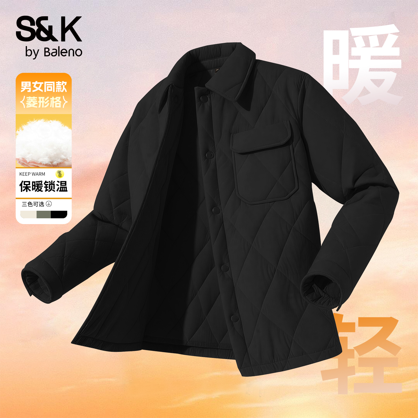 班尼路S&K菱形格翻领夹克棉服男款2025冬季外穿防风抗寒男士棉衣A