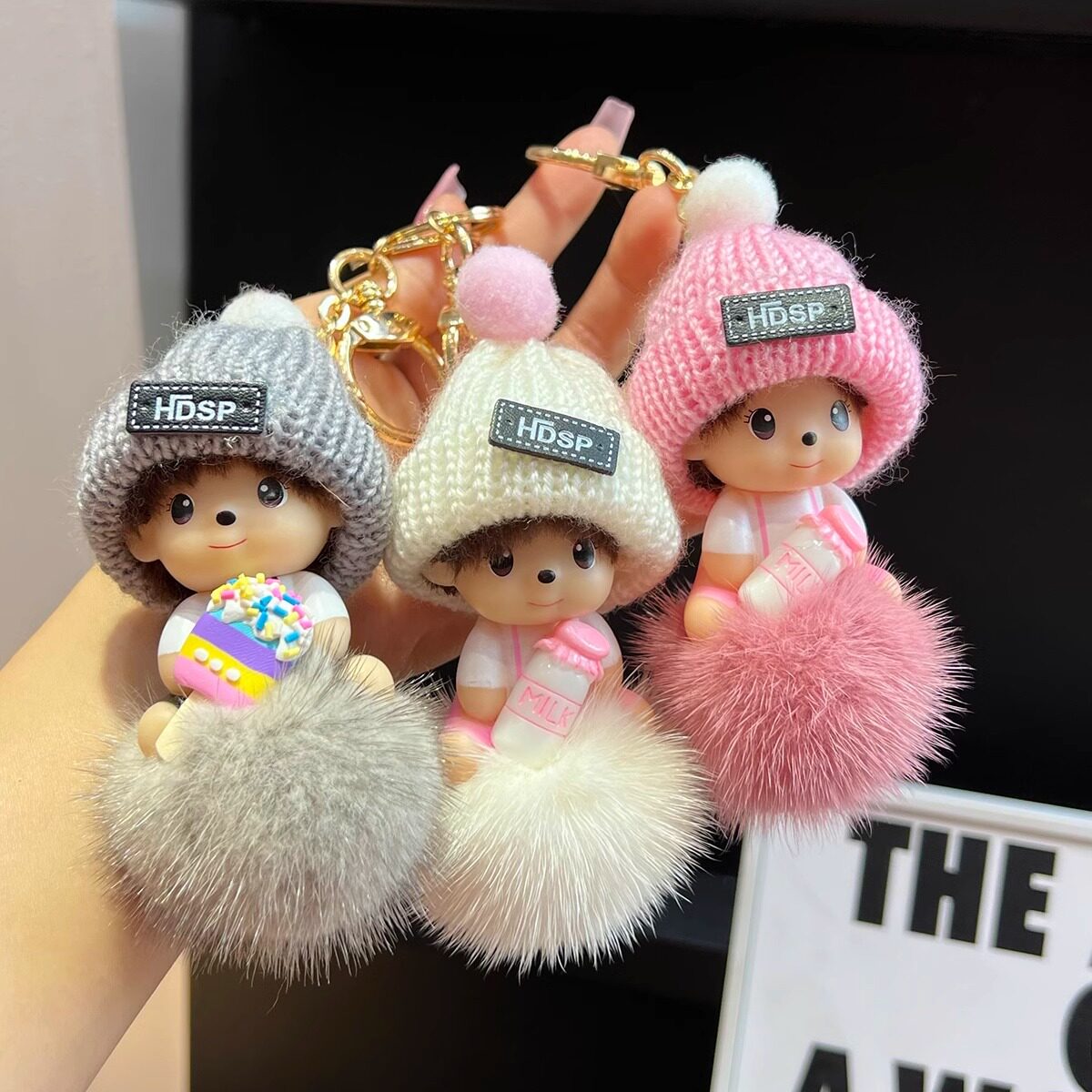 水貂毛球蒙奇奇汽车钥匙扣挂件ins卡通毛绒公仔书包挂饰礼物ins风