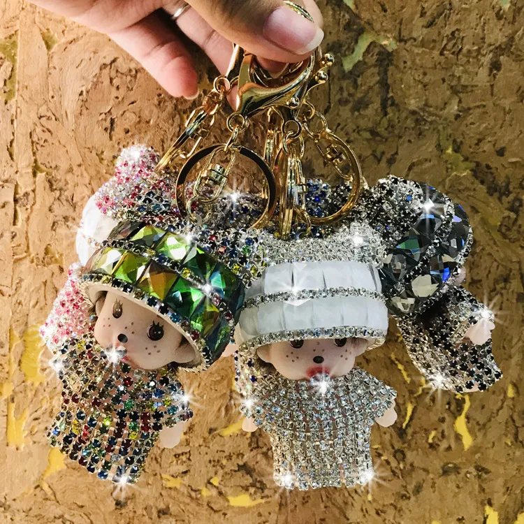 2024新款镶钻可爱公仔水晶包包挂件镶钻蒙奇奇汽车钥匙扣女礼品