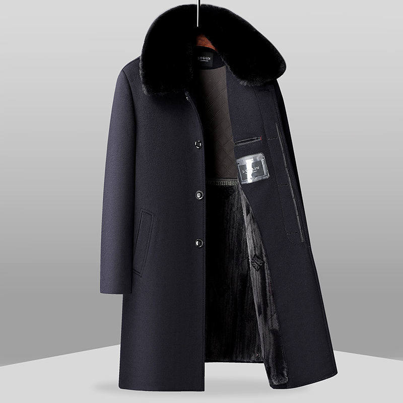 冬季中老年男士貂绒大衣中长款爸爸冬装毛呢外套加绒加厚老年男装