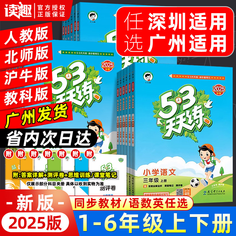深圳专版/广州专用2025秋小学53天天练一二三年级四五六年级上下册语文数学人教版英语教科版深圳沪教牛津版同步练习五三5.3天天练
