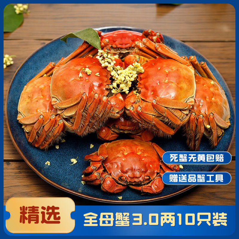 [活蟹]特大10只大闸蟹鲜活螃蟹全母蟹官方旗舰店阳澄礼盒河蟹湖鲜