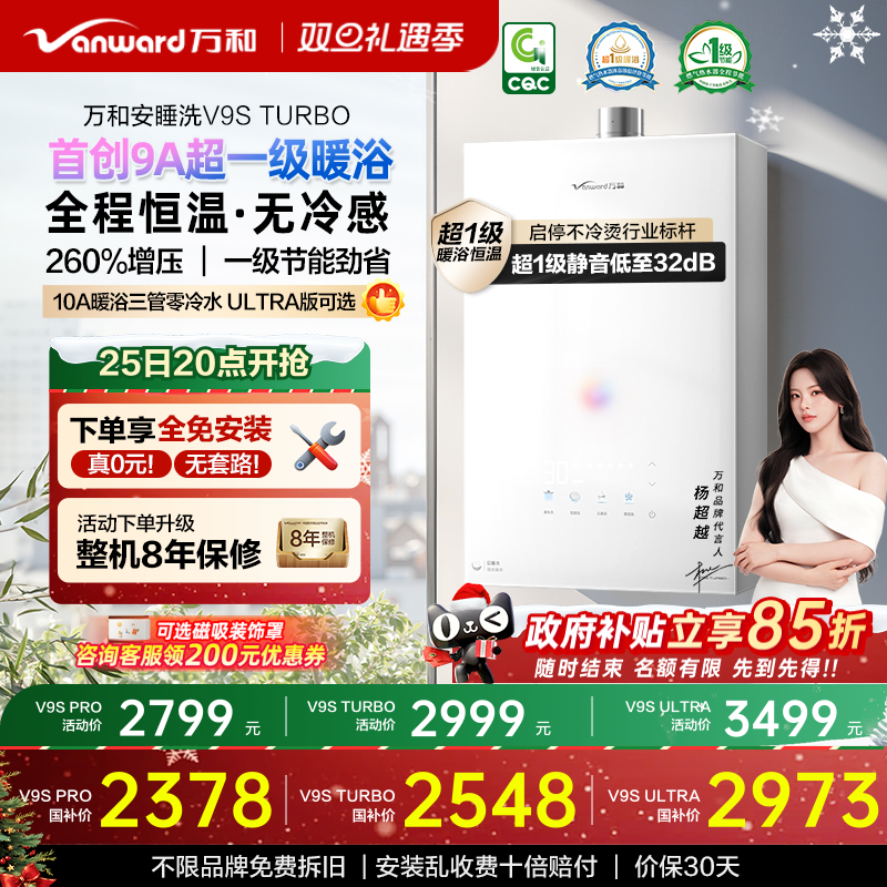 [政府补贴]万和安睡洗新品一级节能静音恒温天燃气热水器V9STurbo