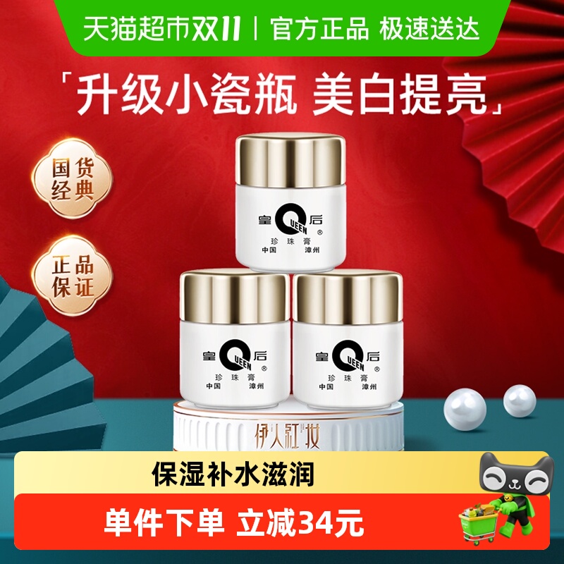 片仔癀皇后牌珍珠膏美白提亮小瓷瓶补水保湿淡化细纹滋润面霜国货