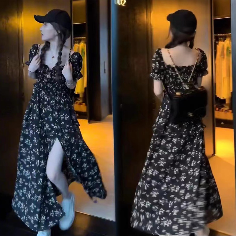 雪纺连衣裙女夏2025新款流行韩版气质裙子很仙的法国过膝款长裙女