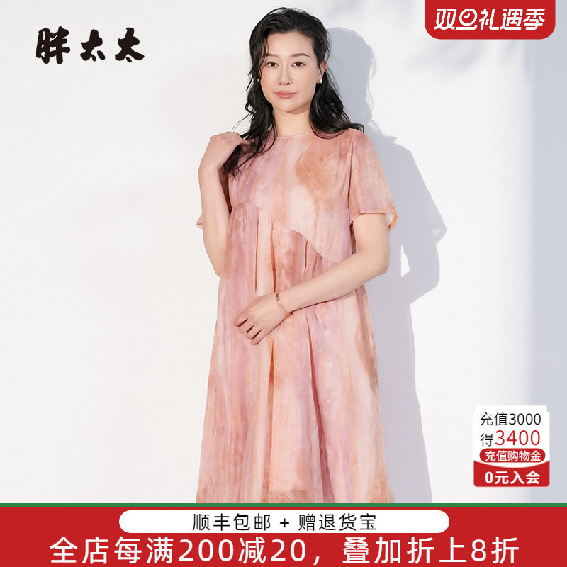 胖太太大码女装夏季新款圆领蜡染韩版连衣裙雪纺妈妈装325200941
