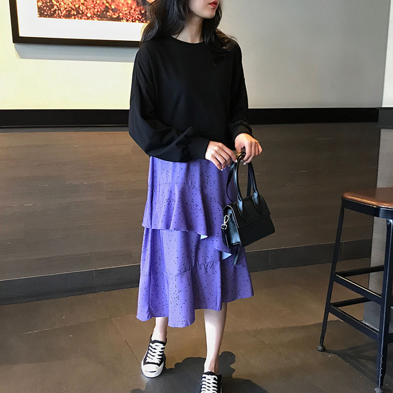 智熏法式卫衣雪纺拼接不规则裙摆2025韩版秋季新款宽松大码连衣裙