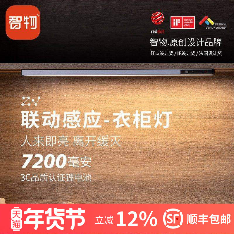 智物联动感应灯led橱柜灯衣柜灯地脚灯充电人体感应灯楼梯过道