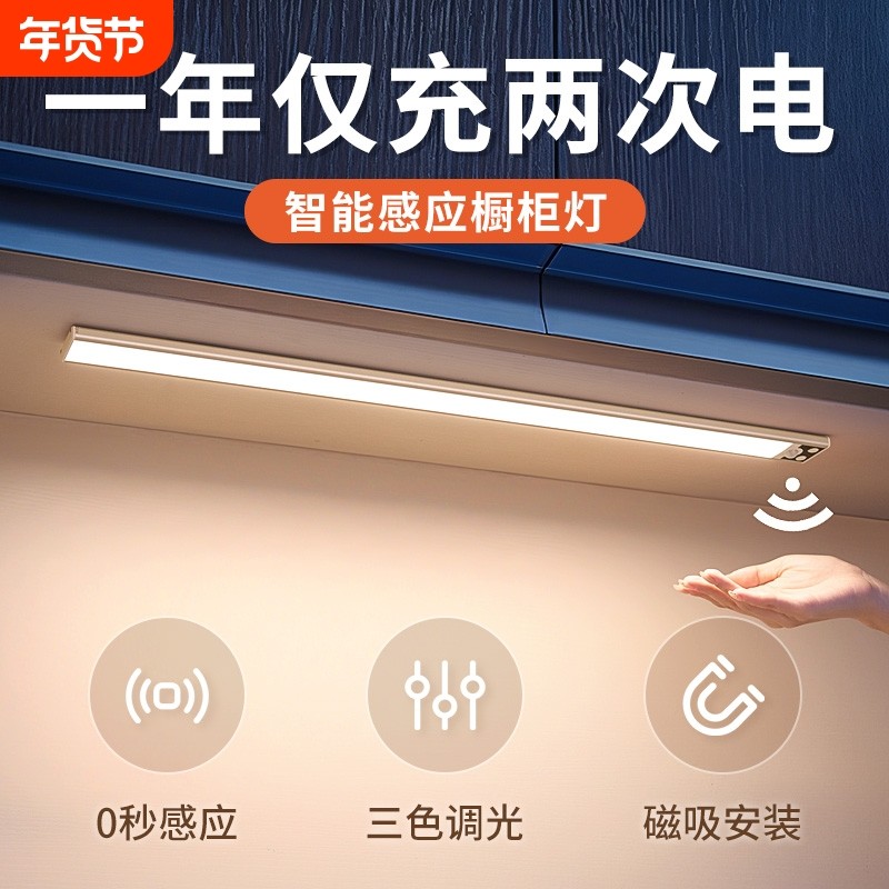 LED橱柜灯带智能感应自动充电式衣柜底灯条长条入户门鞋柜子磁吸