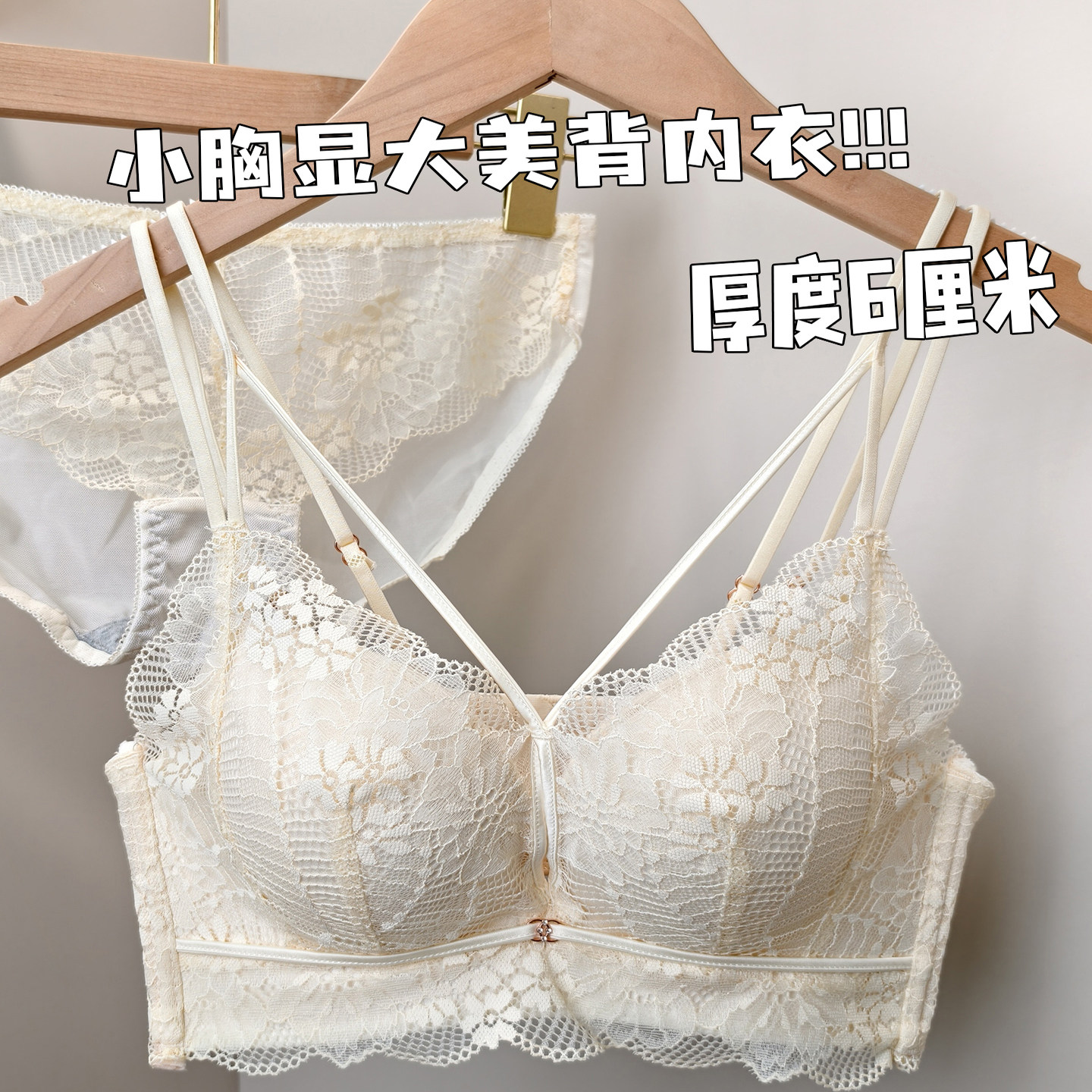 法式蕾丝内衣女小胸聚拢6cm加厚馒头杯显大2026新款美背文胸套装