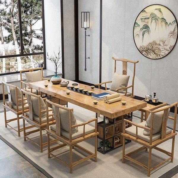 新中式实木茶桌轻奢简约阳台家用原木大板茶台办公室会客泡茶桌椅
