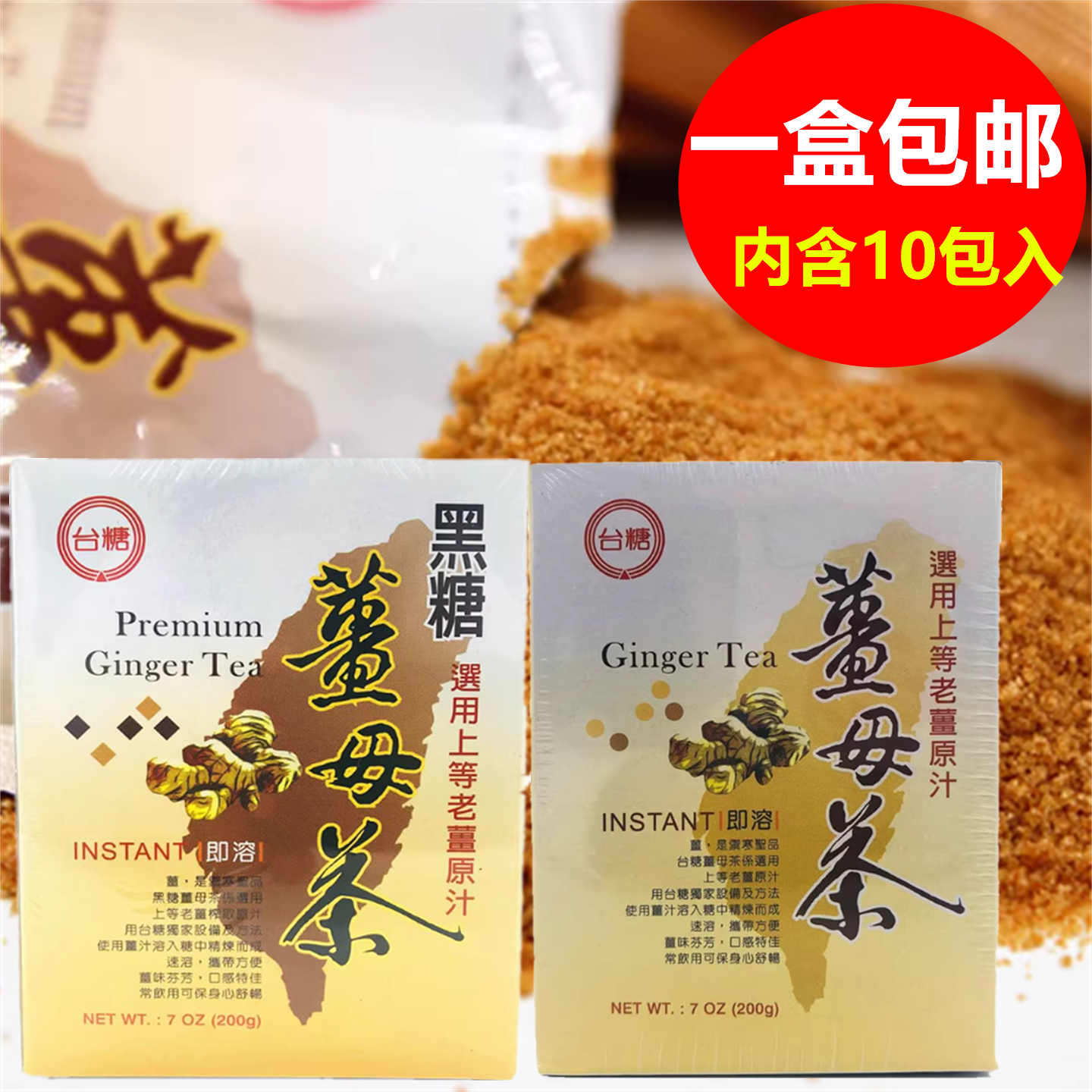 包邮 台湾进口 台糖黑糖姜母茶 老姜茶 台糖原味姜母茶20G*10包