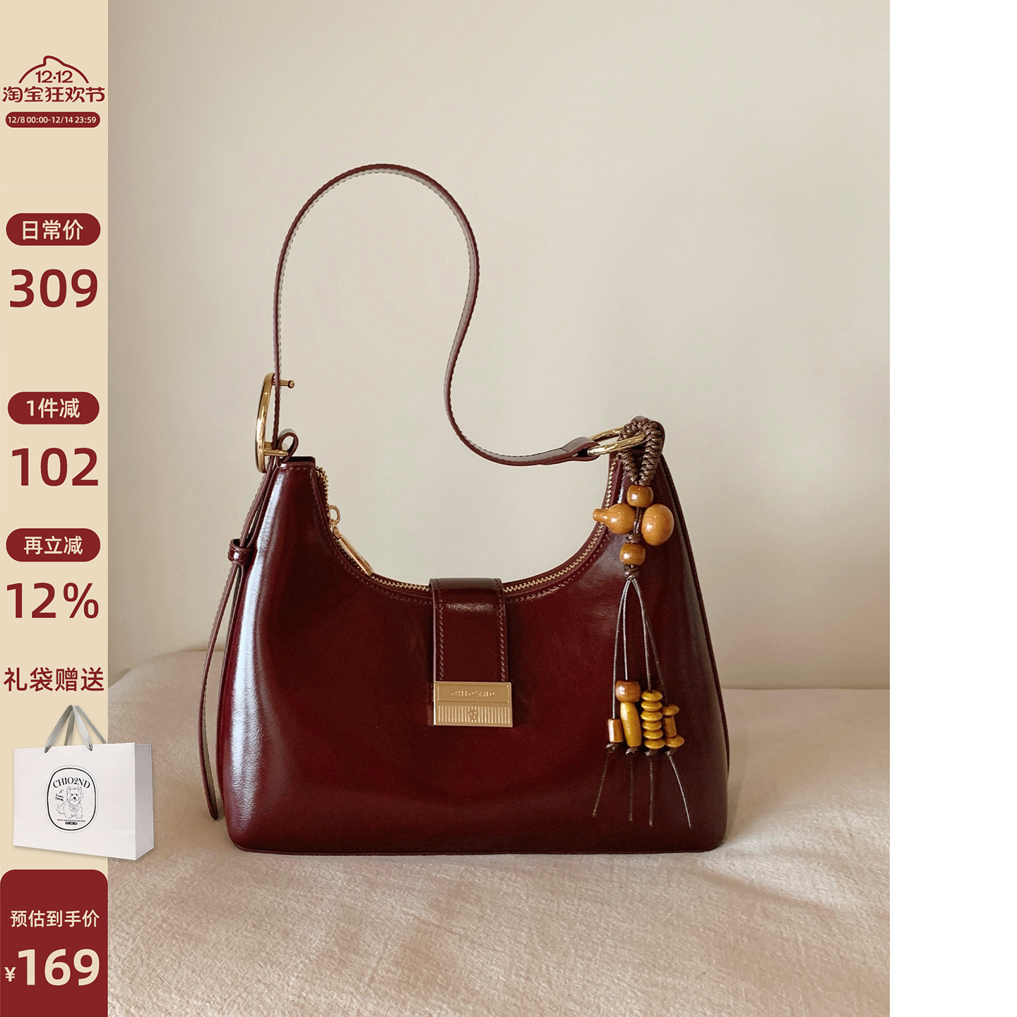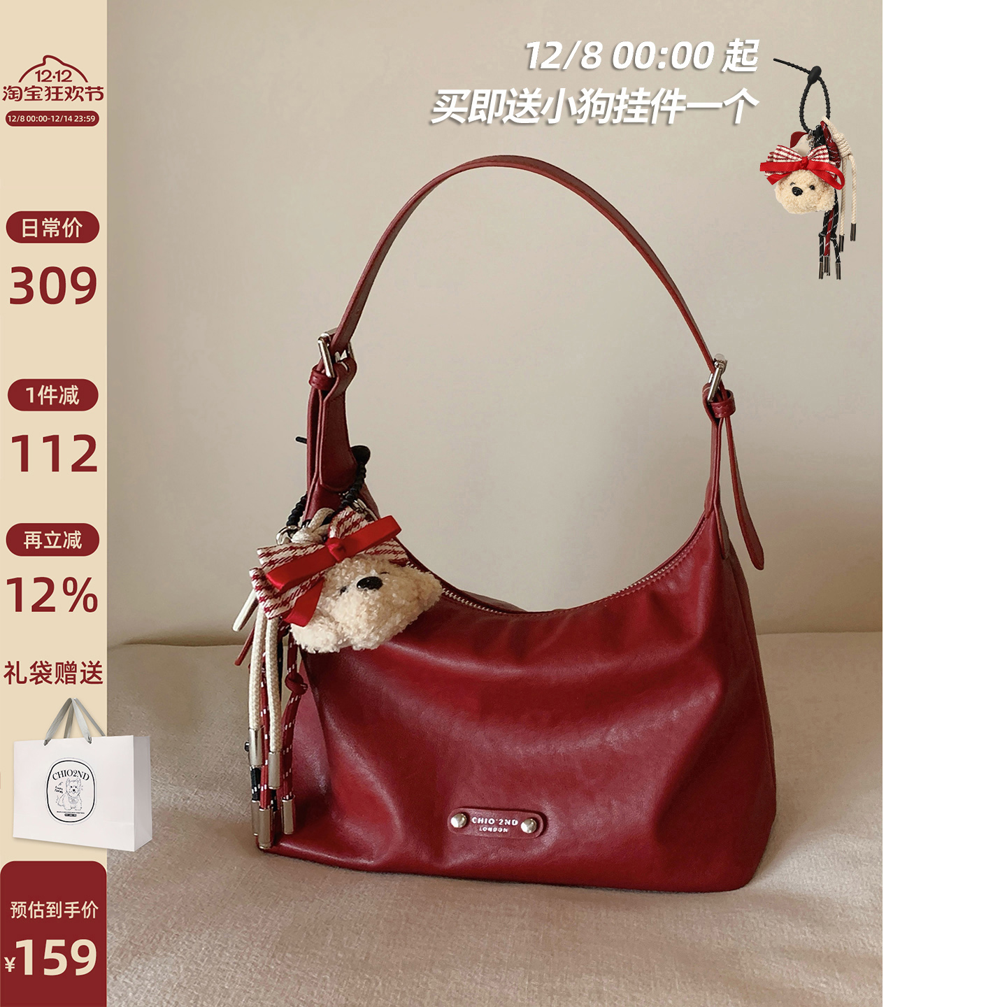 南风Chio2nd 真皮月牙包包女秋冬手提包小拎包单肩斜挎包红色婚包