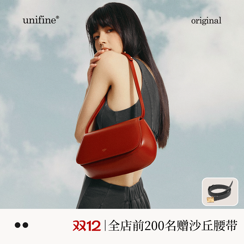 【金靖同款】unifine新款包包腋下包红色婚包女新娘真皮斜挎包