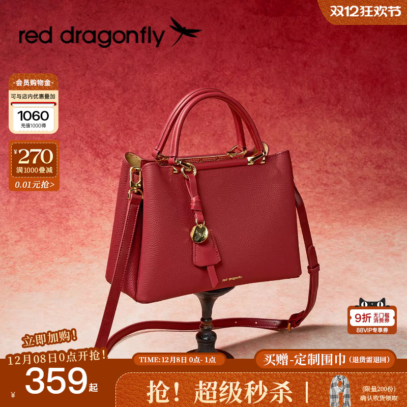 红蜻蜓手提婚包女士新娘日常可用真皮红色喜婆婆妈妈婚宴斜挎包包