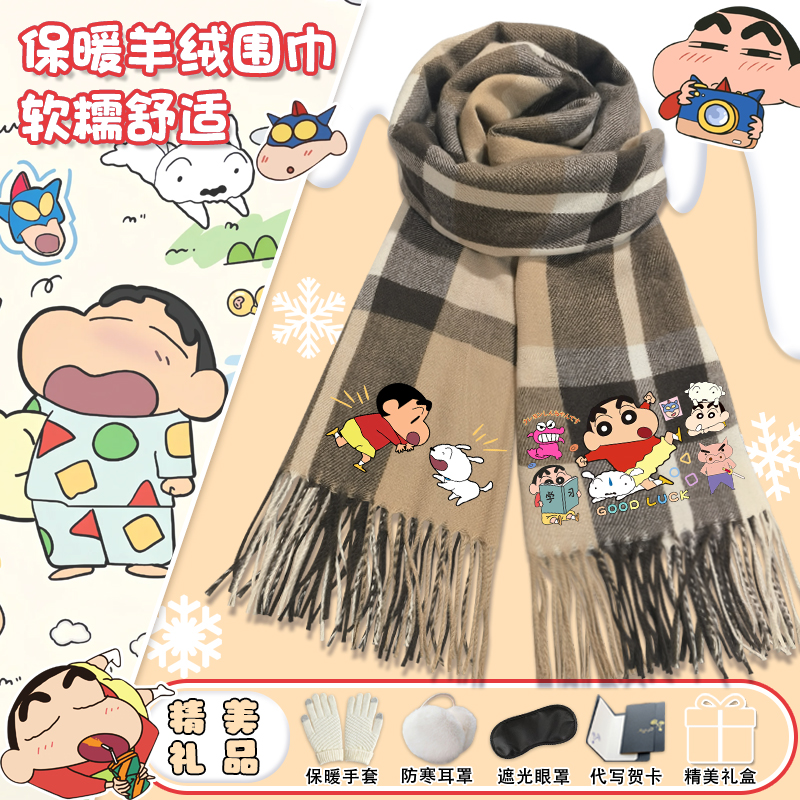 蜡笔小新围巾动漫可爱男冬季保暖羊绒学生卡通新之助围脖生日礼物