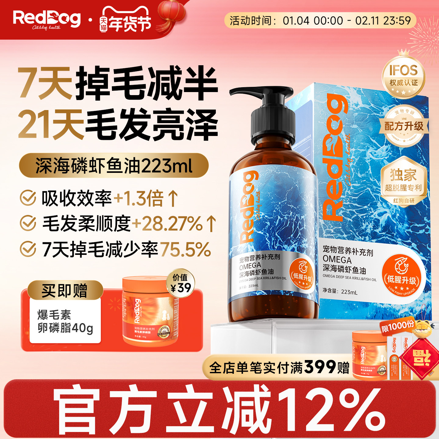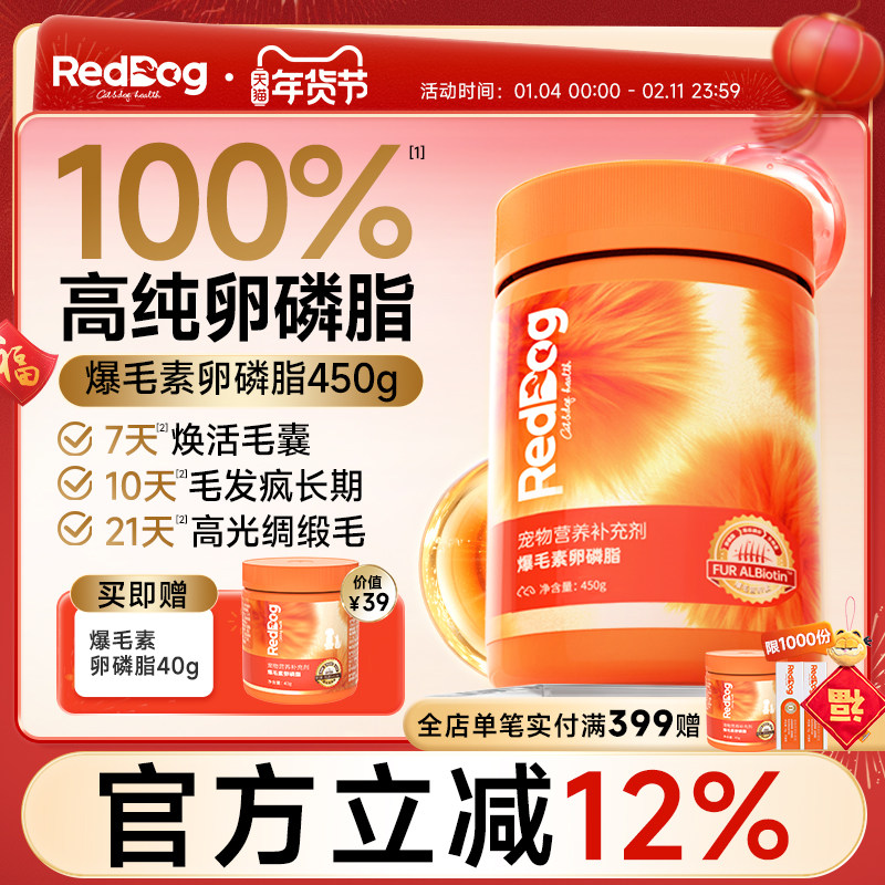 RedDog红狗爆毛粉卵磷脂猫咪狗狗鱼油美毛护肤爆毛软颗粒450g