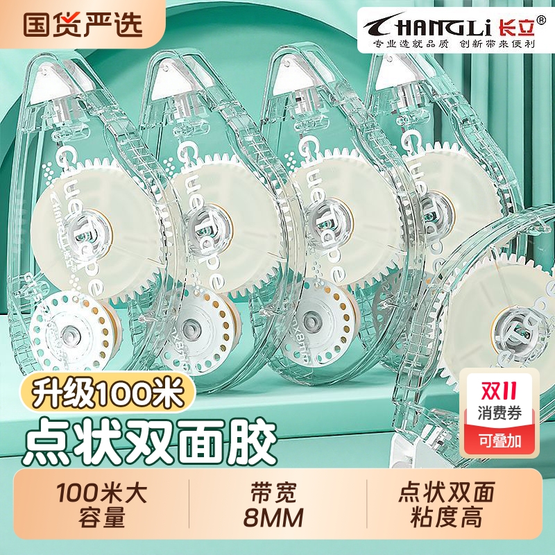 长立点点胶大容量胶带100米点状双面胶修正带式双面胶学生用ins错题手账黏度高大容量简约风手帐贴纸