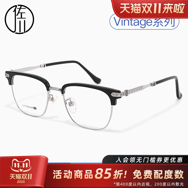 眉线 x 复古半框眼镜 明星同款大脸大框纯钛潮周杰伦可配近视架男