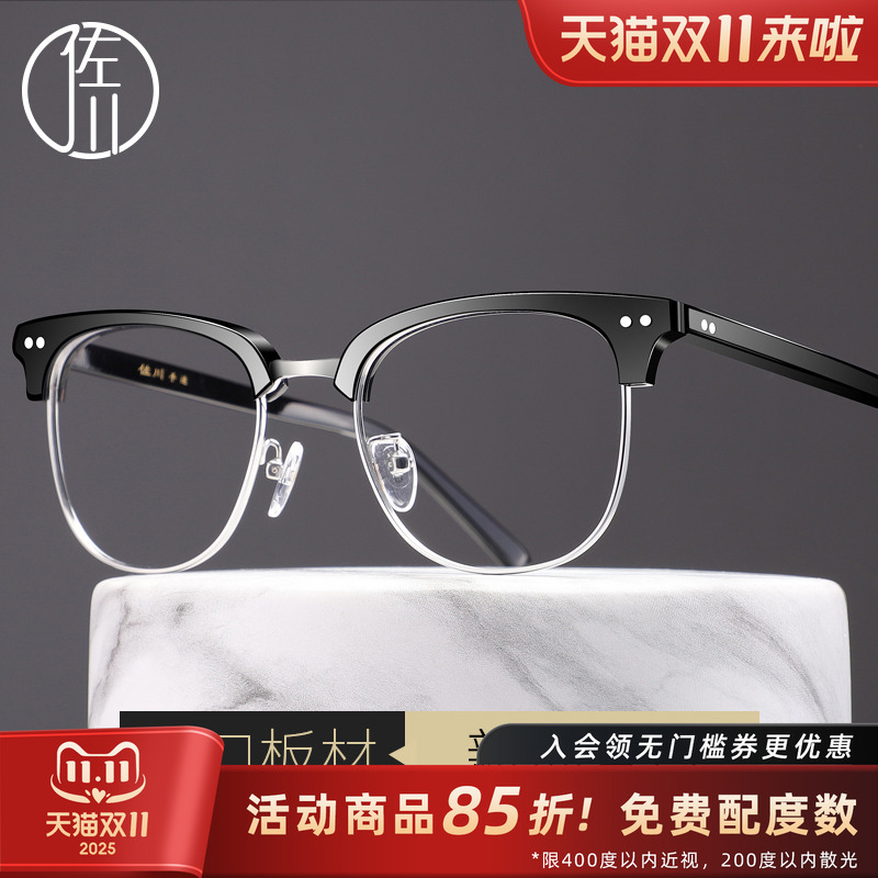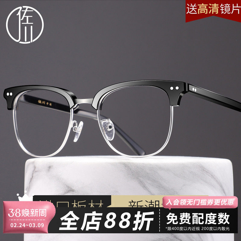 佐川眼镜框男复古半框眼镜女板材大脸近视眼镜框圆脸眼睛框镜架男