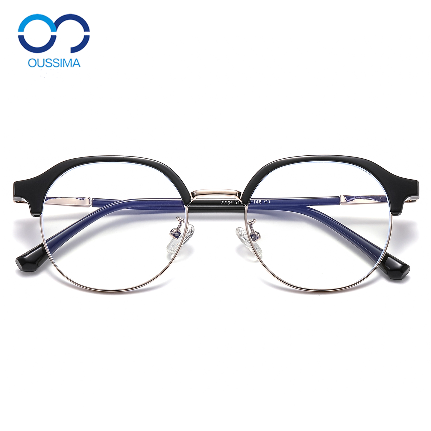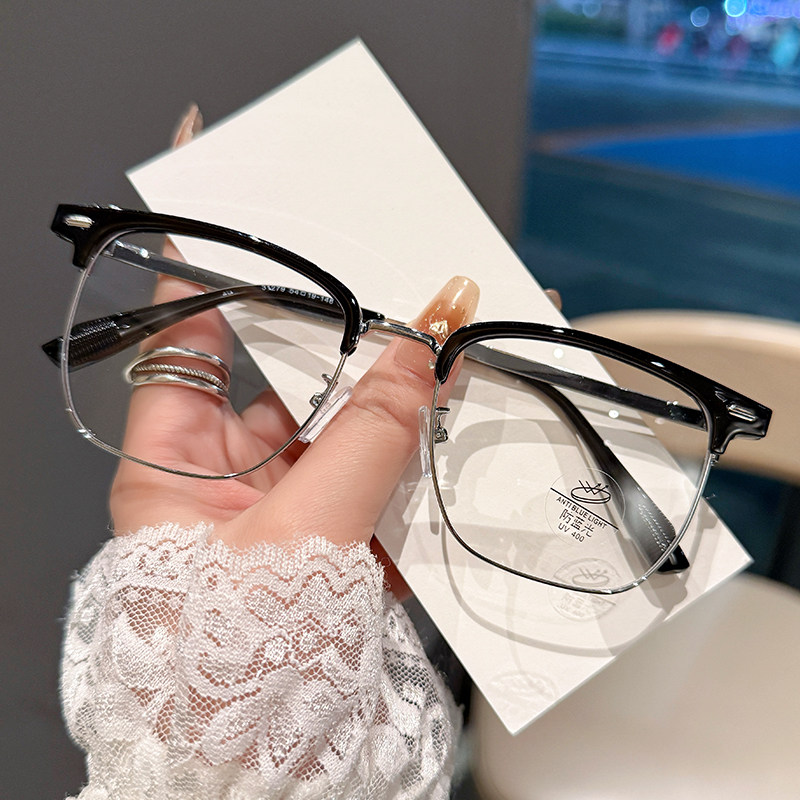 防蓝光半框眼镜女斯文复古理工男眼镜平光镜可配有度数近视眼镜框