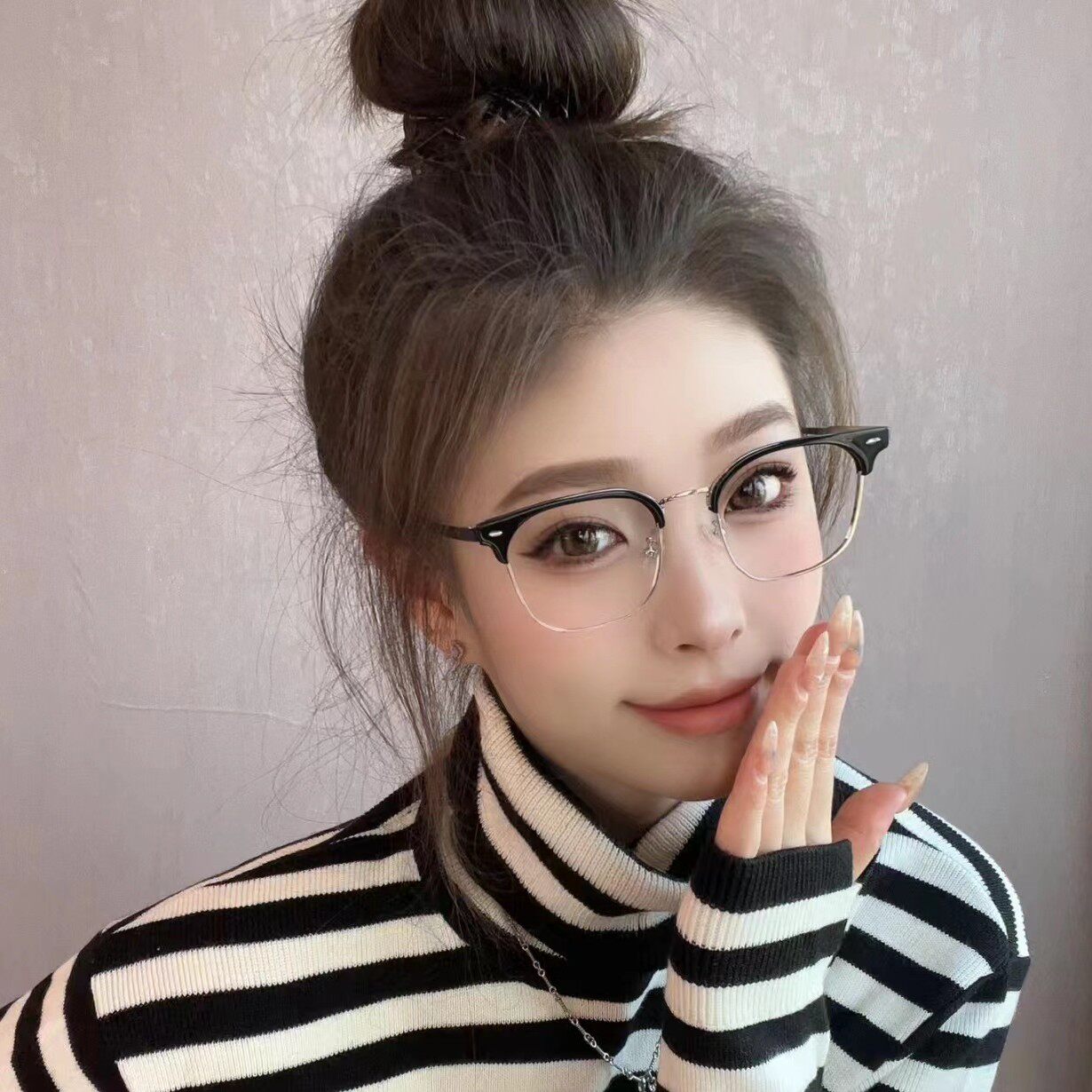 下半框眼镜女可爱装饰眼睛镜架御姐纯欲风无镜片镜框复古度数可配