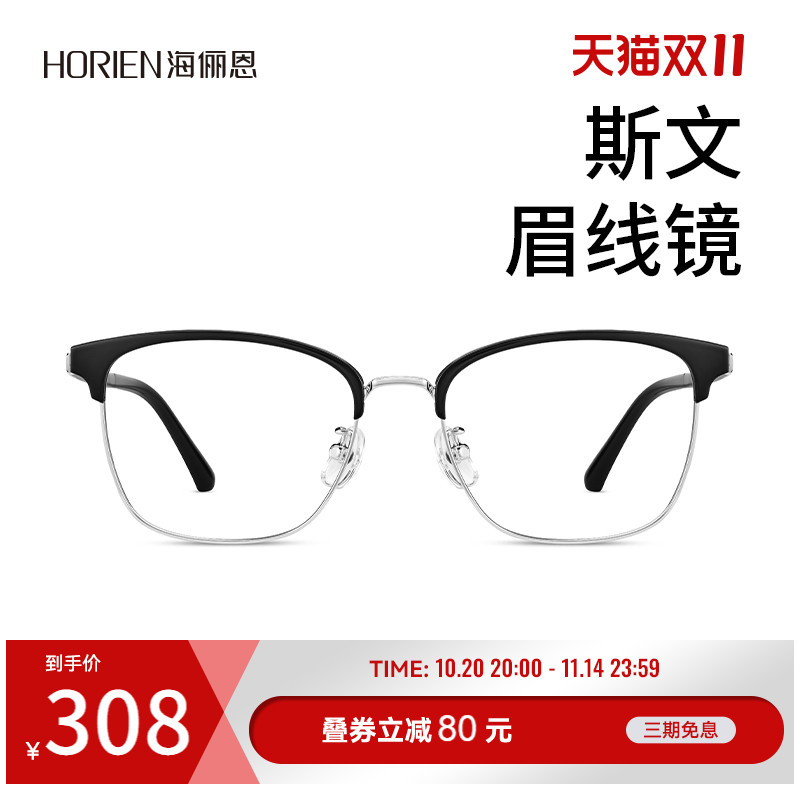 海俪恩复古半框眼镜近视可配度数斯文男款素颜防蓝光眼镜女N75025