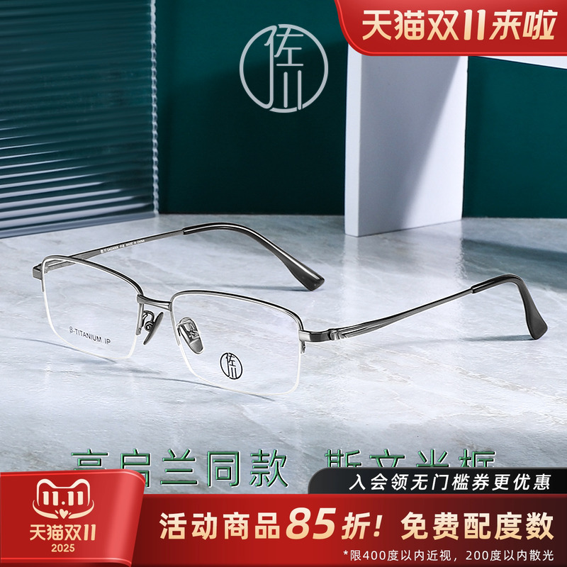 眉线 x 复古半框眼镜 明星同款纯钛超轻潮薛之谦可配近视镜架男
