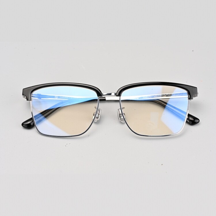 日本制造金属复古半框眼镜不锈钢镜架银色紫渐变轻巧舒适CE499