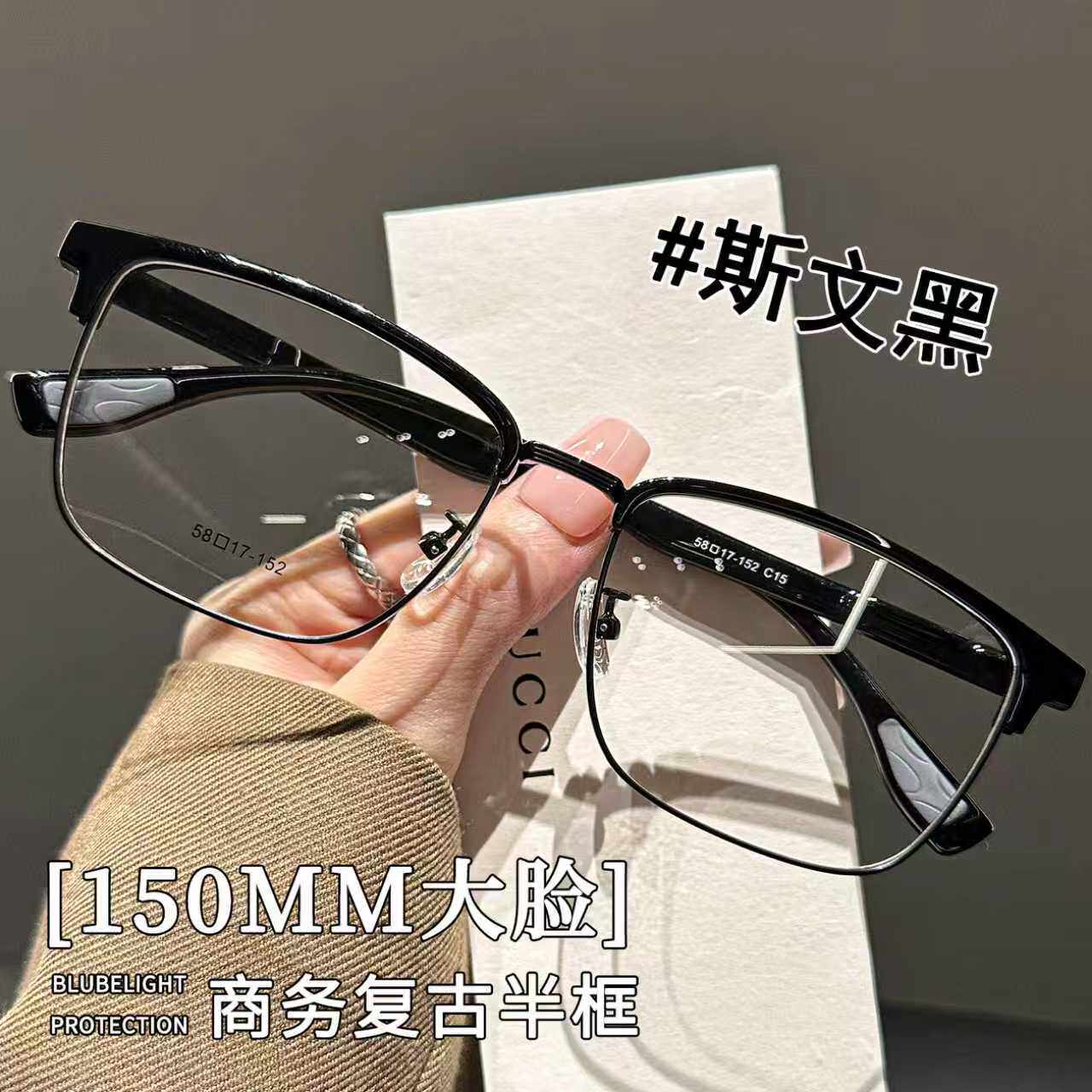 潮痞帅纯钛复古半框眼镜男款大脸可配近视防蓝光超大框160mm镜架