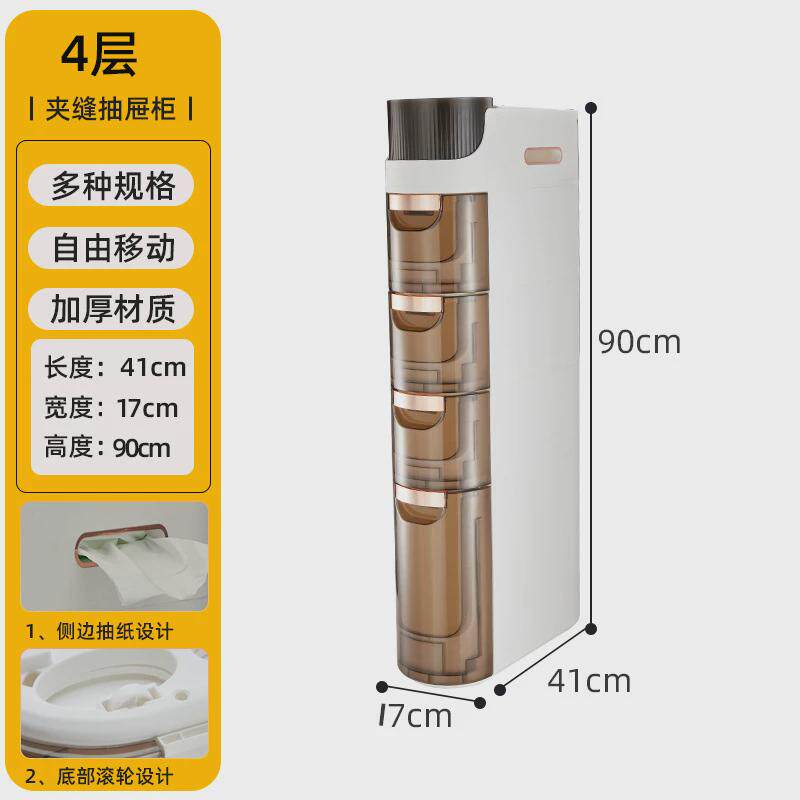 卫生间夹缝收纳柜自带垃圾桶浴室抽屉式超窄缝隙柜厕所马桶侧边柜